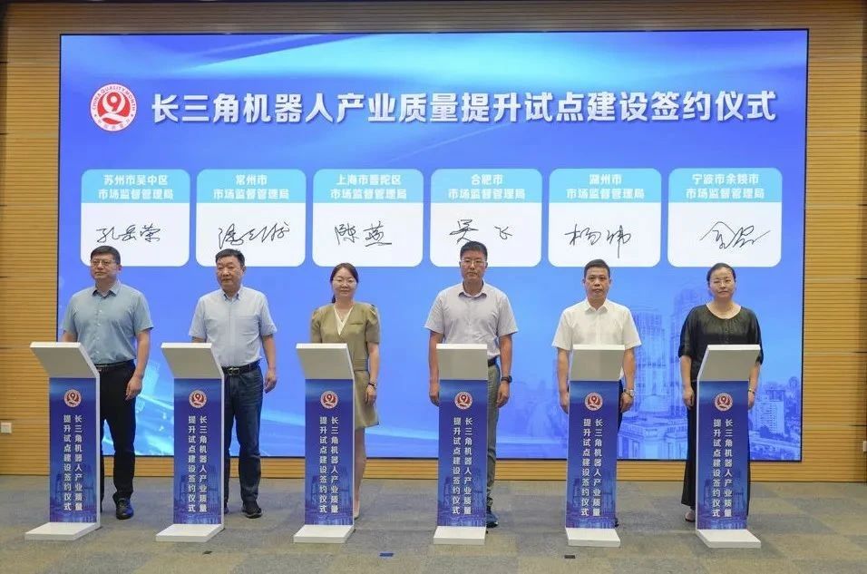 会议现场,各方代表共同签署了长三角机器人产业质量提升合作协议。机器人产业是衡量国家科技实力和高端制造业水平的重要标志,对实现经济社会高质量发展具有重要战略作用。为落实长三角一体化发展国家战略和市委市政府实施方案的要求,普陀区联合机器人功能型平台牵头开展长三角机器人产业质量提升工作。