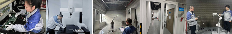 4. 产品测试:公司建有全面的可靠性实验室,包括高低温测试、振动测试、喷淋测试、静音测试、碰撞测试、过载测试等。每台机器人均进行激光标定,确保绝对精度;出厂前100%执行满载满速老化测试,确保功能磨合达到产品最优状态。