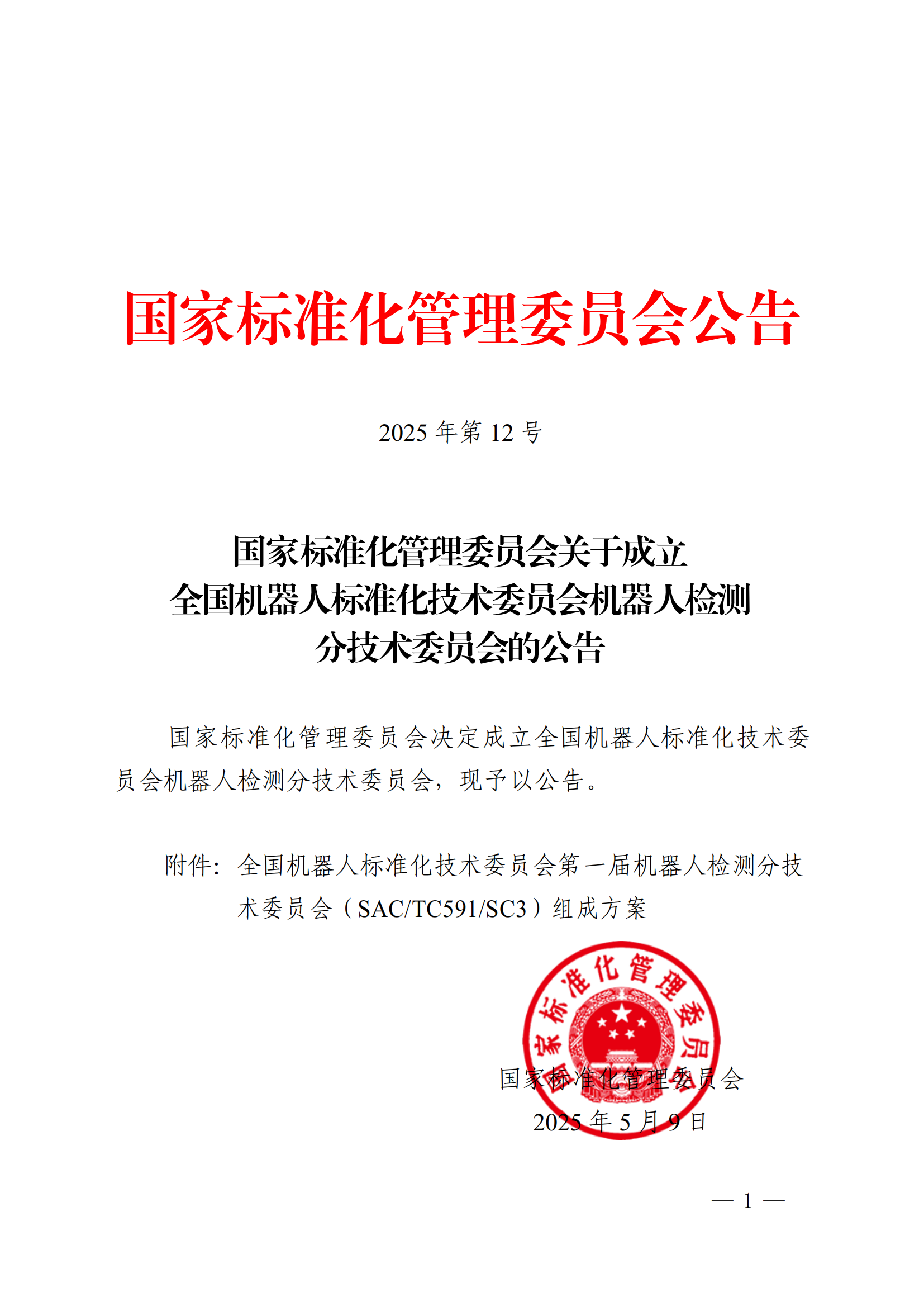 5月9日,国家标准化管理委员会发布《关于成立全国机器人标准化技术委员会机器人检测分技术委员会的公告》,决定成立全国机器人标准化技术委员会机器人检测分技术委员会(以下简称:分技术委员会),主要负责全国机器人检测与评估领域标准化工作,秘书处由上海电器科学东升国际承担,我院专家邢琳任委员兼秘书长。