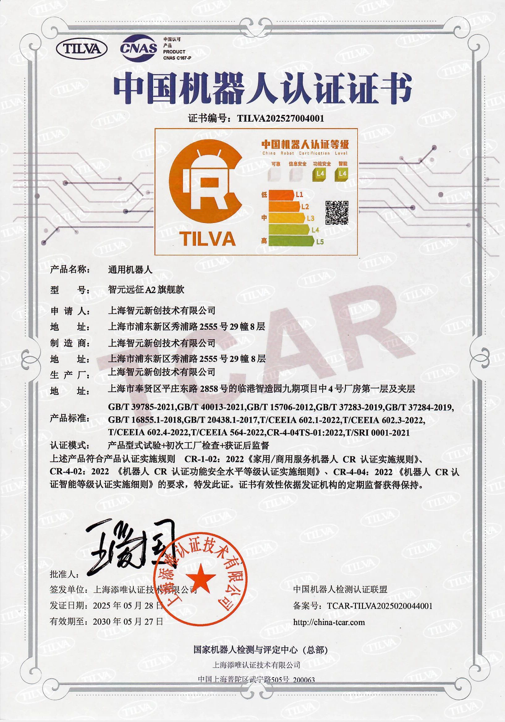 上海智元新创技术有限公司通用业务部总裁王闯表示:“智元远征A2人形机器人荣获国内首张人形机器人CR认证证书,是对智元产品安全可靠性和智能化水平的权威认可,意味着远征A2在复杂多变的场景中,既能全方位多场景安全应用,又能高效精准地完成各项任务。智元将以更高的标准、更严的要求打磨产品,以安全可信作为人形机器人产品核心要求,推动人形机器人从‘可用’向‘可靠’‘好用’大步迈进,为行业树立全新的标杆典范。”