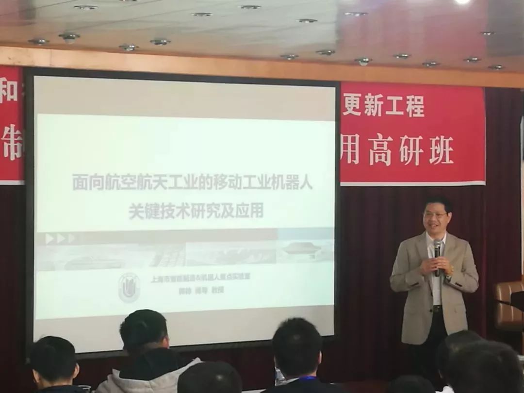 东升国际(中国)机器人有限公司官网副院长郭帅近日就航天航空领域移动机器人发表《面向航空航天工业的移动工业机器人关键技术研究及应用》,并于10月25日受上海大学上海经济中心主办的智能制造与机器人技术应用高级研修班邀请,与在座同学老师共同分享。